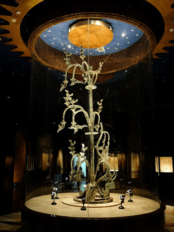 With regard to religion, another statue of note is of what may be a sacred tree, standing 3.95 m tall from a circular base, with branches radiating out, each adorned with leaves and ending with a single piece of fruit.